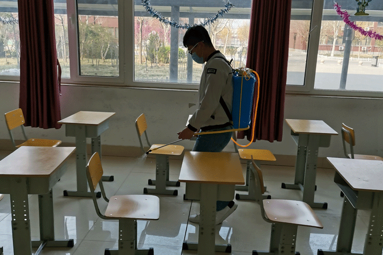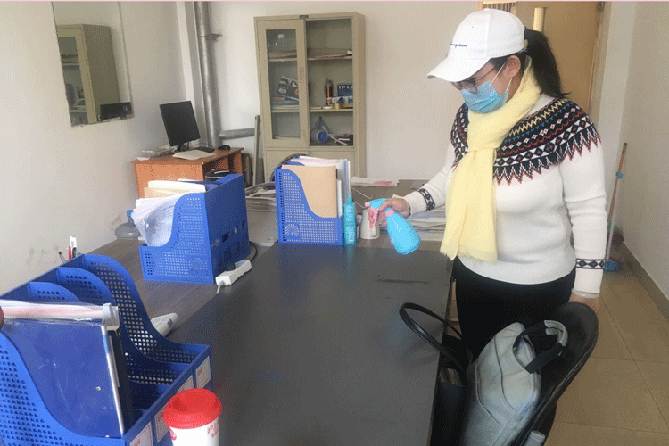 3月23日,全院在校上班教职工对学院各区域进行了全面的清洁卫生和消毒,消毒场所涵盖了教室、学生实验室、教师办公室、楼梯等,采取喷洒与擦拭相结合的方式,特别重视对窗台、门窗把手、电话机等高频接触的物品进行消毒。消毒过程做到了认真、仔细、不留死角,确保消毒彻底。同时对各室卫生进行了清理和通风,给师生提供了安全、卫生的工作和学习环境。