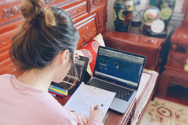 2.贺莹老师:在家中认真备课,根据学生实际情况制作教学资料,通过网络学习平台,手把手帮助学生安装制图软件、熟悉软件中各个工具的使用方法。