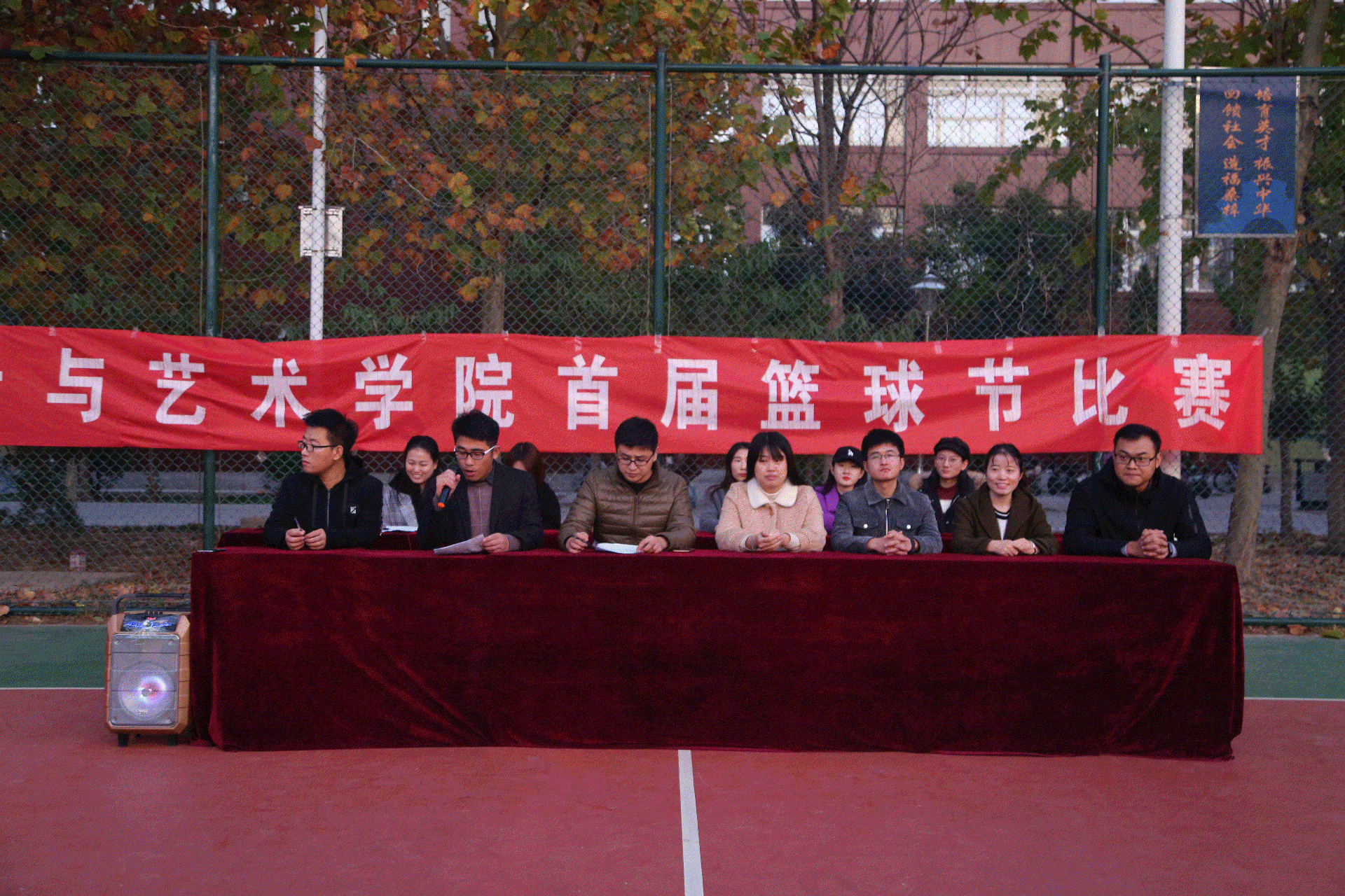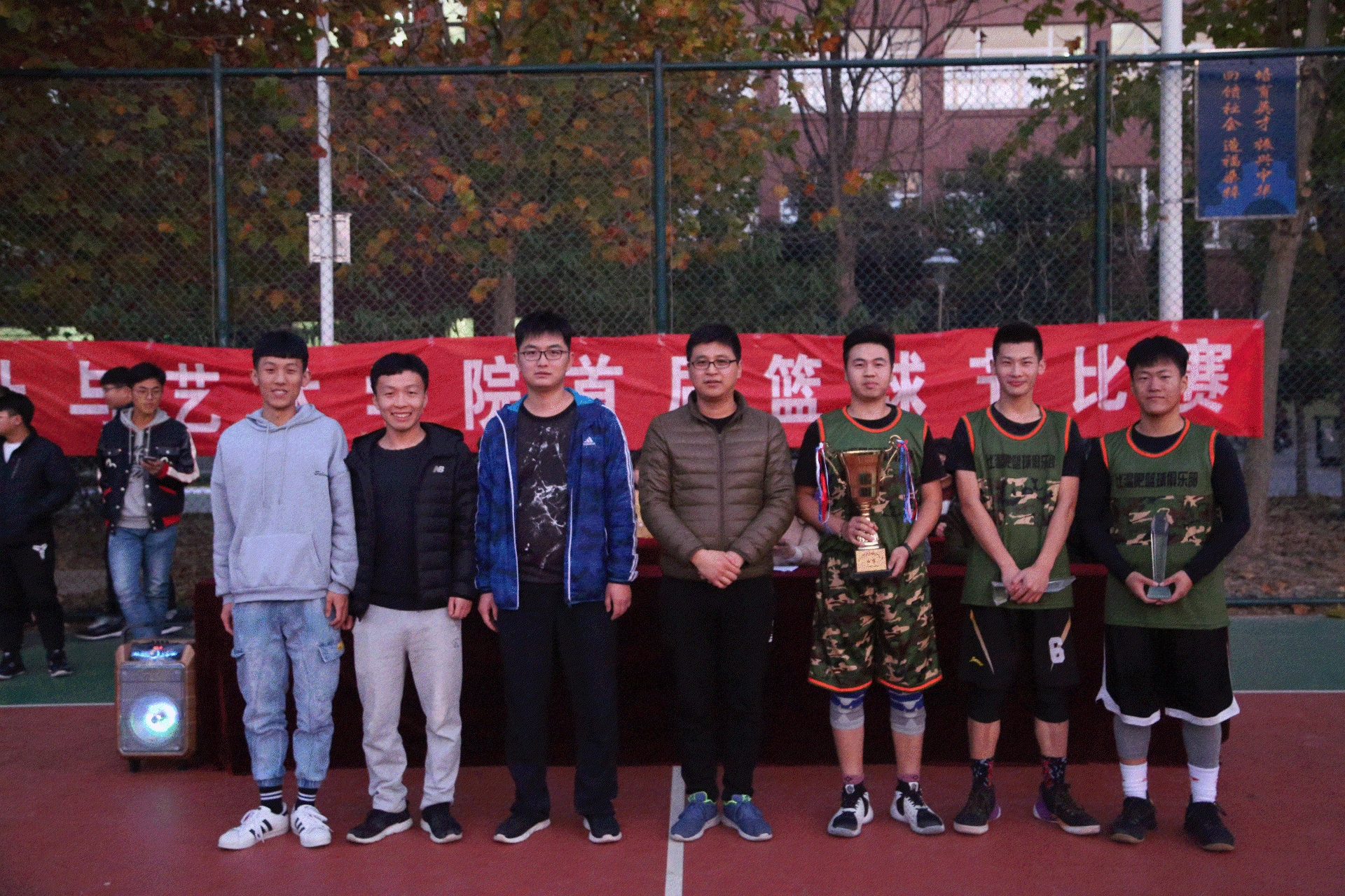 2019年11月13日,太阳成城集团tyc234cc首届篮球赛经过了半个月的激烈角逐,成功落下帷幕,在学校篮球场召开闭幕式。学生科长郑帅、学管干事、全体辅导员老师及各班级代表队出席此次闭幕式。