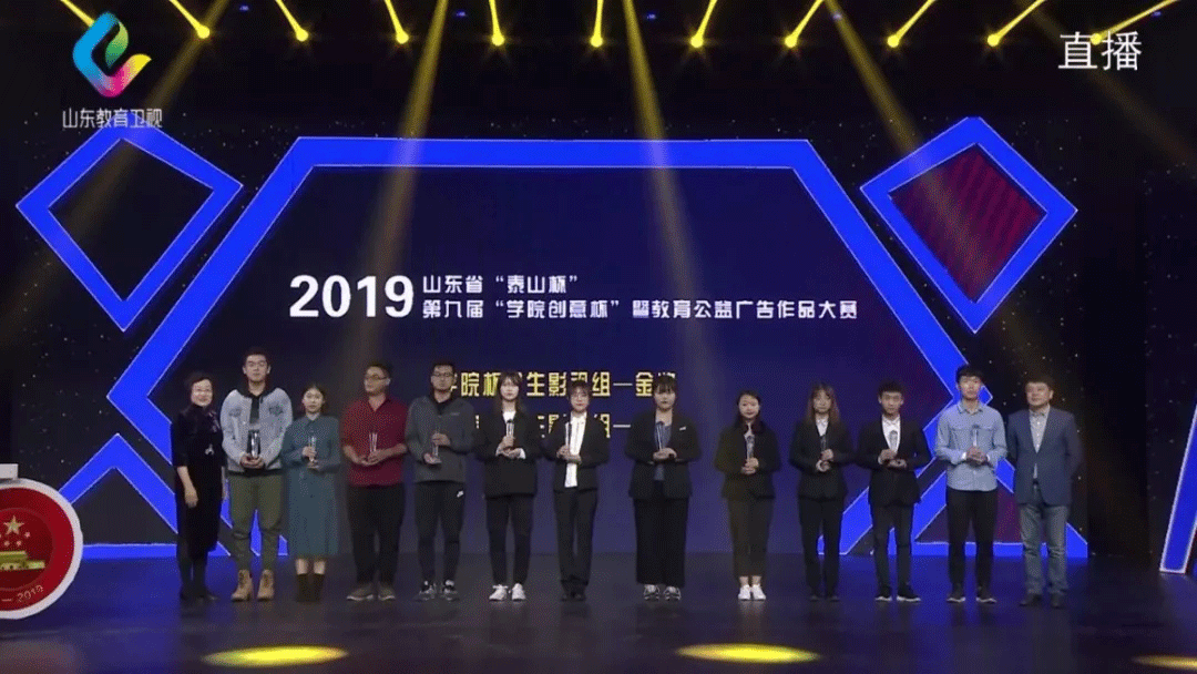 10月23日,山东省第九届“学院创意杯”暨教育公益广告作品大赛颁奖典礼在山东教育电视台演播大厅举办,太阳成城集团tyc234cc王浩、郑寒蕾、焦曼曼、申春凤等同学在本次大赛中喜获佳绩,凭借优秀的微视频作品斩获金奖两项,优秀奖六项。