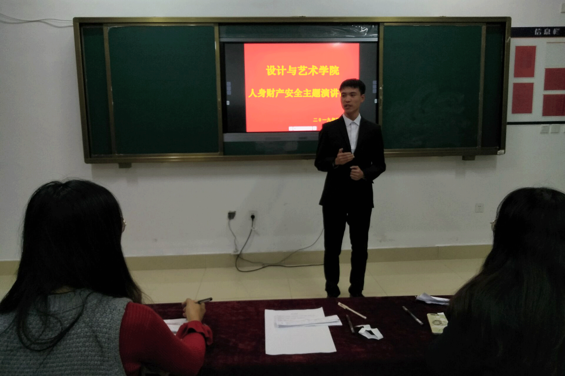 为进一步增强同学们的安全防范意识,提高同学们的安全防范能力,全面普及校园安全常识,学院于2019年10月24日下午在21号教学楼502教室举办“要点记心间,安全伴我行”主题朗诵比赛,本次大赛由团总支书记郑帅及学院部分辅导员老师担任评委。