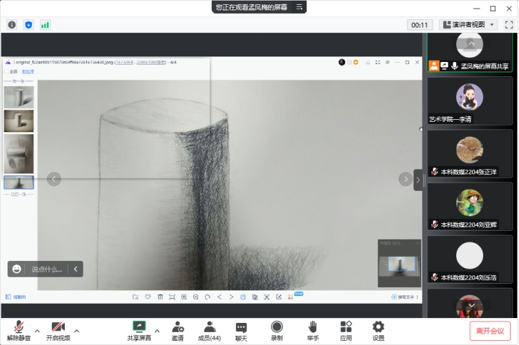 图5:《绘画基础1:素描》授课教师线上示范绘画技法