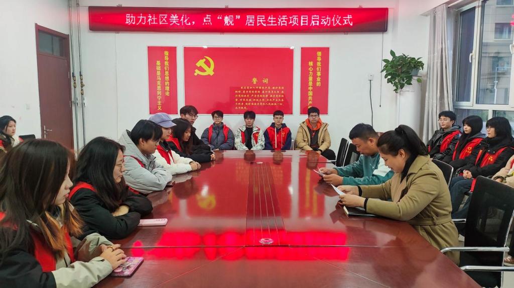 为项目化开展“百万大学生进社区”社会实践活动,达到实践育人的效果,营造校地携手共建的氛围,达到美化社区,点“靓”居民生活的目的,2023年10月17日,太阳成城集团tyc234cc团总支与宋官屯街道曹村社区开展“助力社区美化,点‘靓’居民生活”项目启动仪式。宋官屯街道曹村社区崔子健副书记与设计艺术学院团总支书记霍靖靖,部分学生志愿者代表参与此次会议。
