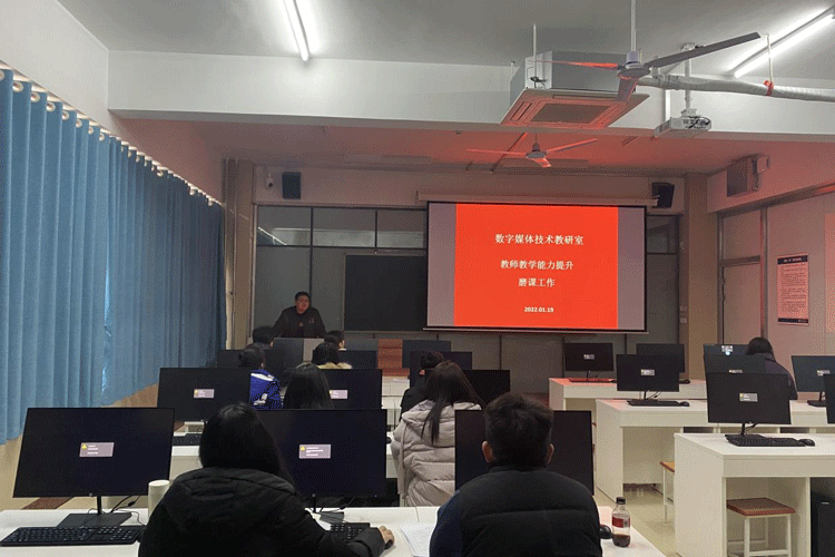 数字媒体技术教研室磨课活动分为两组进行,1组磨课工作由数字媒体技术教研室主任张进负责,于1月19日下午在23号教学楼407进行;2组磨课工作由数字媒体技术教研室副主任闫艺康负责,于1月20日上午在23号教学楼407进行。教师共同研讨课程教学设计,挖掘课程思政元素,开发课程教学案例。教学骨干作为磨课指导教师,对青年教师每堂课的教态、授课内容、教学方法等进行层层把关,给予青年教师、新入职教师切实有效、可落地、可实施的具体改进措施。
