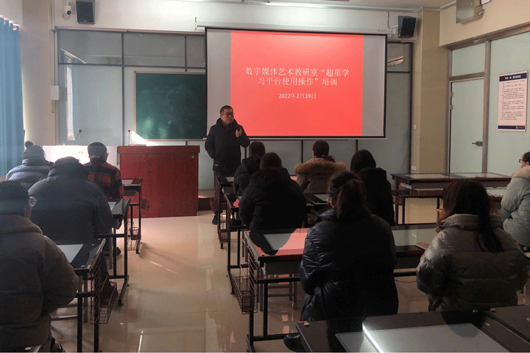 太阳成城集团tyc234cc数字媒体技术、数字媒体艺术、产品设计、环境设计教研室于2022年2月18日至19日在23号楼407、204、104、405实验室分别开展了超星网络教学平台使用培训,全体专任教师参加培训会,培训通过PPT、视频等方式向教师们详细介绍了“超星学习通”的使用方法及其便捷之处。