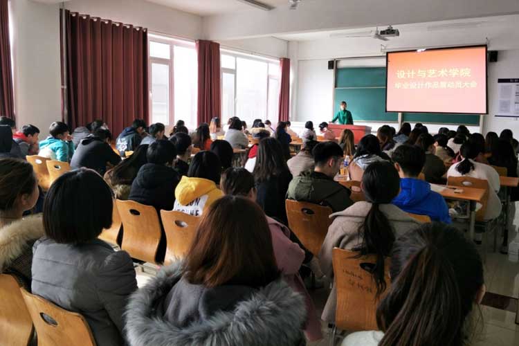 周院长指出,毕业设计是大学生完成大学学业前最后一个重要的实践学习环节, 鼓励大家以更具有创新性、多样性的方式做毕业作品展示,更希望同学们在保证毕业设计顺利完成的基础上认真对待专业实习,做到密切配合、详细分工,要多与指导老师沟通、交流,充分把握和利用好实习时间。 最后,周院长对毕业设计作品展的工作进行了细致的解读。2019届毕业设计作品展将在行政楼一楼大厅举行,主要规划为平面、环艺、二维动画、影视等六大展区,其中含媒体互动、产品衍生等,近200余件作品。届时要求各指导教师根据区域实际来调整作品展出,以整体效果调动局部从属的角度,鼓励同学们充分发挥自己的想象力去积极布展,听从指导教师安排,力求毕业展区布置的新颖,突出艺术学院的特色。 本次会议不仅是一次毕业设计作品展的动员大会,同时也是毕业指导老师和2019届毕业生的总结会。大会在大家的掌声中画上圆满句号,在此预祝2019届毕业生们在毕业设计作品展中获得成功,设计完成属于自己的精彩作品。