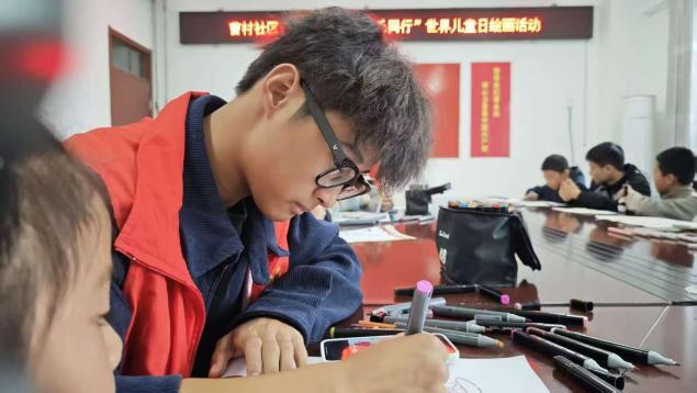 活动现场,学员们提前备齐彩笔、铅笔、画纸等材料,以“世界儿童日”为主题引导孩子们发挥想象。孩子们手持画笔专注创作,有的勾勒牵手相伴的小伙伴,有的晕染绚烂的自然景致,有的描绘心中的美好愿景,色彩明快的画作铺满桌面。志愿者们一对一指导,耐心解答孩子们的疑问,适时给予创意启发,现场氛围温馨而热烈,每一幅作品都承载着孩子们对生活的热爱与对世界的憧憬。孩子们在欢快的氛围中学习绘画技巧,不少作品还通过现场展示环节收获了掌声,既培养了艺术兴趣,也激发了创造力与自信心。