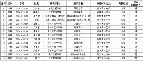 根据《太阳成集团tyc234cc关于做好学生转专业工作的通知》的相关要求与规定,经学生申请、学院审核、教务处复核、学院考核,拟接收转专业学生14名。现将名单予以公示,公示期为2025年5月20—5月22日。