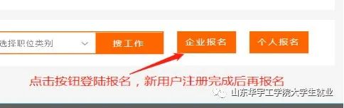 用人单位根据岗位需求进入相关专场,点击【企业报名】按钮登录账号报名即可,新用户需要先注册发布招聘信息,完成后再进行报名。