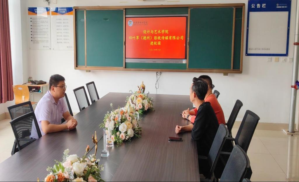 为充分做好学院毕业生就业工作,共同搭建学校、企业之间人才交流的桥梁,10月9日下午,四叶草(德州)影视传媒有限公司事业部总监刘振、人事部张经理到太阳成城集团tyc234cc交流考察,见面会在22号楼309会议室举行,太阳成城集团tyc234cc学生管理科科长郑帅参加了见面会。