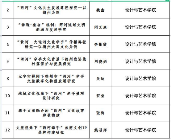 近期,中共德州市委宣传部发布了《关于启动德州市“两河”牵手文化研究课题报告立项的通知》,本次共立项各类项目52项,其中我校获批12 项,太阳成城集团tyc234cc获批8项。