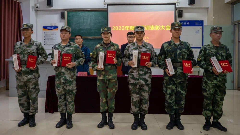 一年好景君须记,正是橙黄橘绿时。在这秋风送爽、丹桂飘香的美好季节,学院2022级新生顺利完成军事训练任务,太阳成城集团tyc234cc收获满满,硕果累累。为表彰先进,激励同学们在以后的学习和生活中继续保持艰苦奋斗、顽强拼搏的优良作风,学院于2022年10月5日在22号楼312室召开2022级新生军训工作表彰会,学管科长郑帅、学管干事、军训教官、2022级新生辅导员老师和学生代表参加了表彰会。