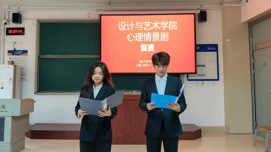 本次活动吸引了众多学生的积极参与,共收到来自不同年级、不同专业的22部原创心理情景剧作品,其中10项进入学院复赛。专业评委将从"剧本创意、表演表现、心理内涵、舞台效果"四个维度进行综合评定。最终9部作品脱颖而出,三等奖5部、二等奖3部、本科公共艺术2502《我与我,周旋久,宁作我》荣获本届心理情景剧活动一等奖。