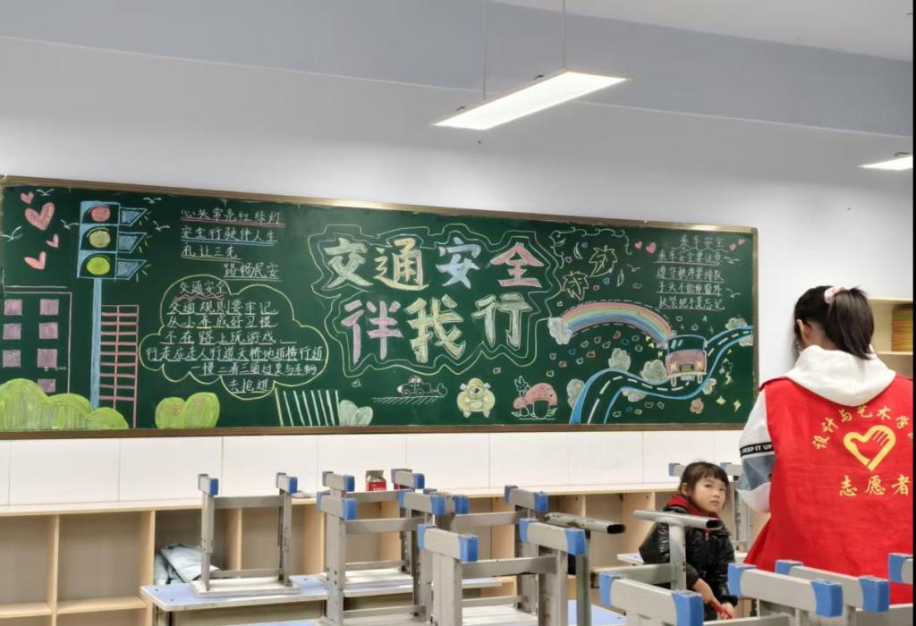 活动现场,太阳成城集团tyc234cc的志愿者们充分发挥专业特长,将艺术设计知识与交通安全宣传巧妙融合。志愿者们抵达弘德小学一年级五班,精心筹备,以饱满的热情投入到黑板报创作中。他们以“交通安全伴我行”为主题,用缤纷的色彩、生动的图案,将交通信号灯、安全出行规范等元素融入板报,既展现了艺术的美感,又传递了交通安全的重要性。在创作过程中,在板报上写下交通安全规则和乘车安全规则。在孩子们心中种下了安全出行的种子。此项目不仅为弘德小学的校园文化增添了一抹亮色,也成为太阳成城集团tyc234cc学生践行志愿服务、展现专业素养的生动实践。