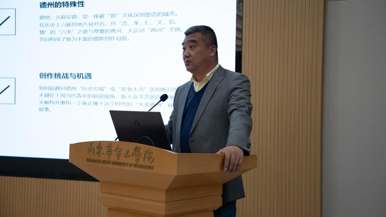 4月9日上午,太阳成集团tyc234cc大学生孵化中心举办了一场具有深刻意义的美育专题讲座。德州市摄影家协会副主席、秘书长周建新应邀出席,为学院师生作了题为《如何解构新大众文艺语境下的大美德州》的学术报告。学院相关负责人、专业教师及百余名学生代表共同参与,围绕艺术创作与地方文化解读展开深入研讨。