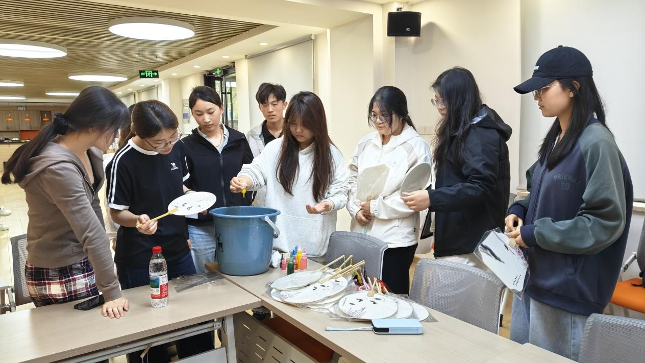 培训现场,指导老师与专业骨干提前准备漆扇制作全套材料与工具,围绕漆扇文化背景、核心制作工艺、安全操作规范及志愿服务注意事项展开系统讲解。从扇面预处理、漆料调配、线条勾勒到色彩晕染、细节修饰,主讲人逐一示范关键步骤,针对制作难点进行重点拆解。参与培训的大学生志愿者认真学习、主动实操,相互交流技巧、纠正手法,全面掌握非遗漆扇基础制作与教学指导能力,为后续进社区开展体验活动做好充分准备。